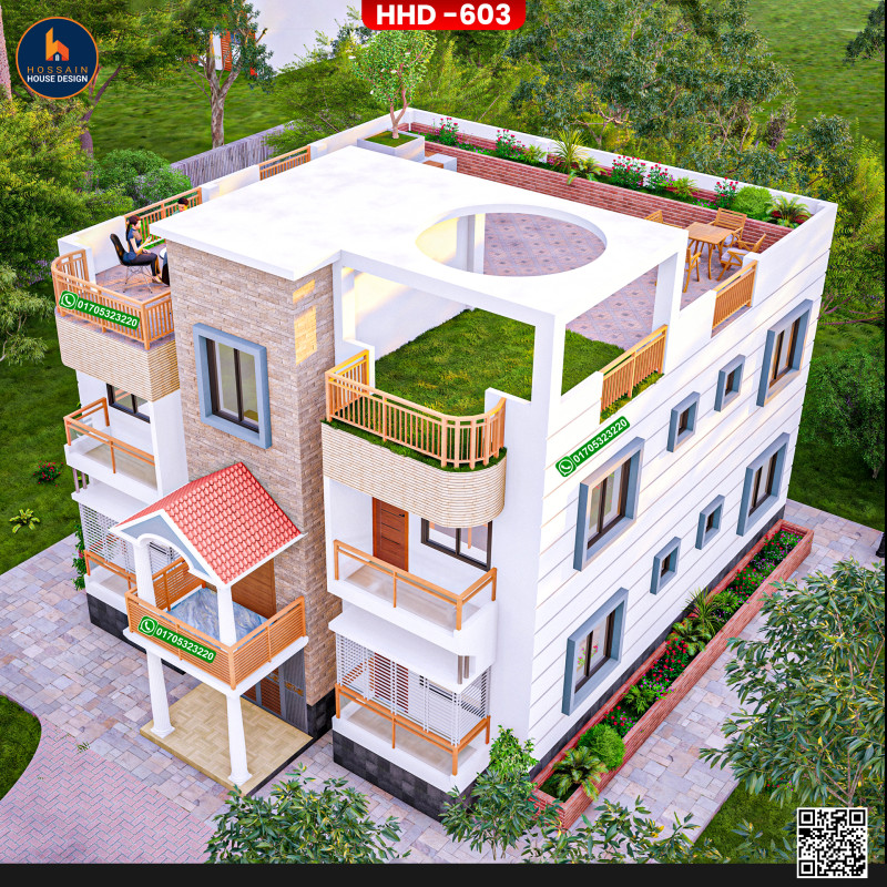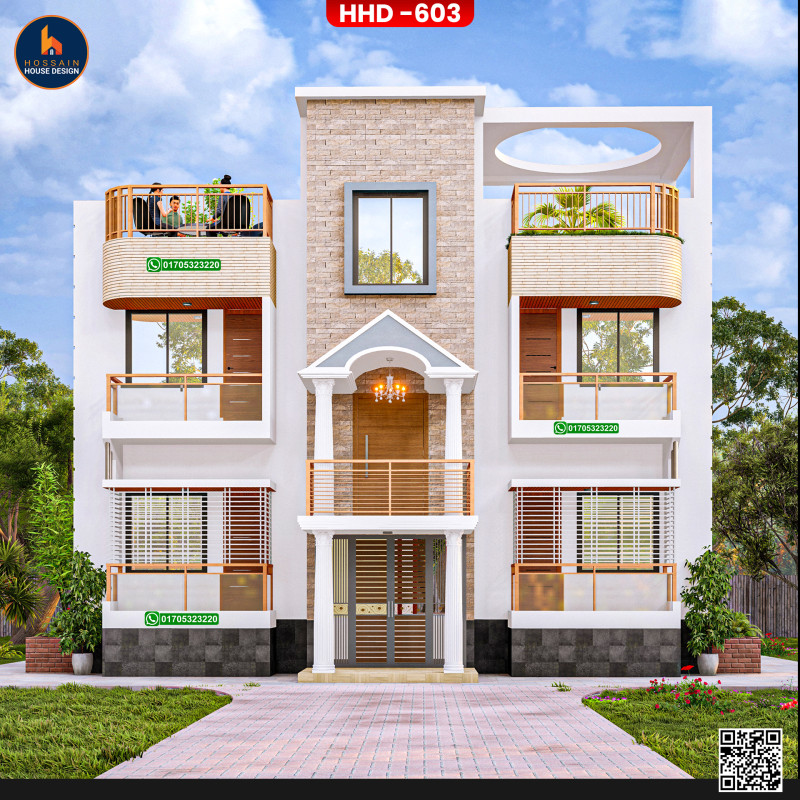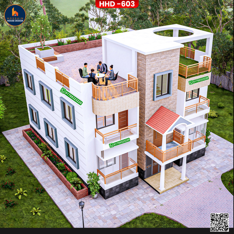 HHD 603 – 2 Storied House Design in Noakhali Sadar, Noakhali is a thoughtfully crafted RCC duplex house plan that blends functionality and modern design for long-term residential use. This structure is ideal for families looking to build in a growing area like Noakhali, whether in town or semi-rural settings.