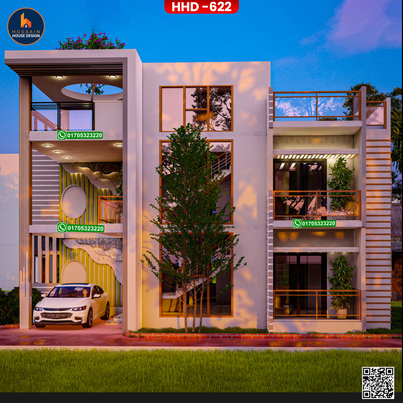 HHD 622 – Duplex House in Katiadi, Kishoreganj is a beautifully designed 2 storied residential home, tailored for families who value comfort, durability, and architectural elegance. Built on a solid RCC frame, this duplex layout features modern space planning and a balanced exterior elevation—perfect for both village and suburban lifestyles in Bangladesh.