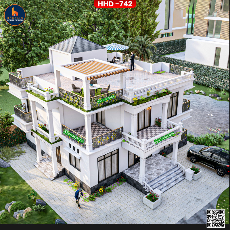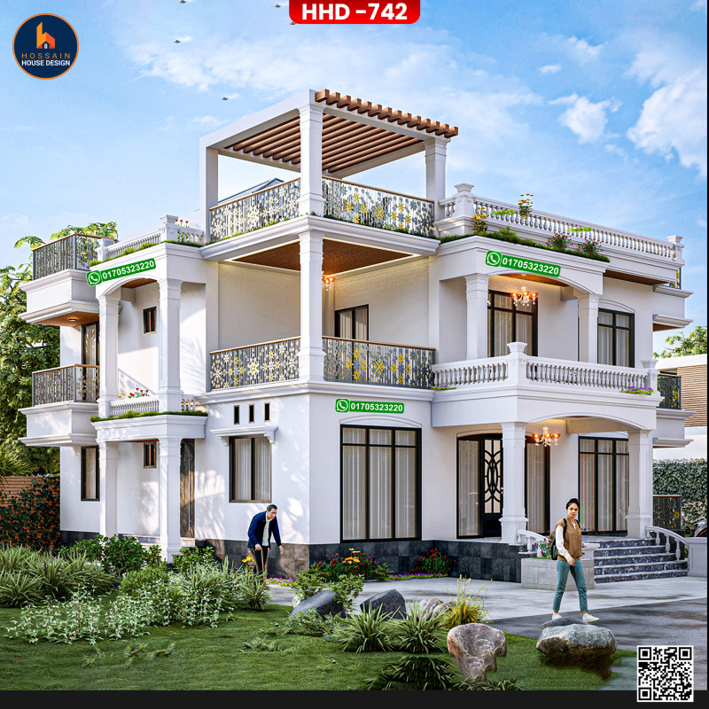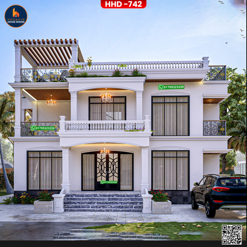 HHD 742 – 2 Storied House Design in Damudya, Shariatpur is a stylish and functional duplex residential home, ideal for families looking for long-term comfort and architectural elegance. The design is based on a solid RCC (Reinforced Concrete Construction) structure for durability and safety.