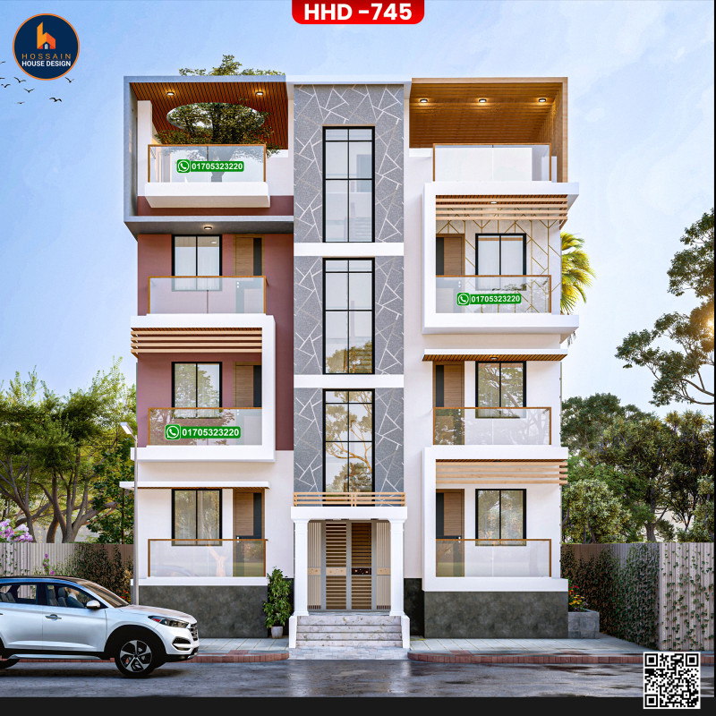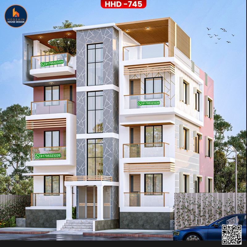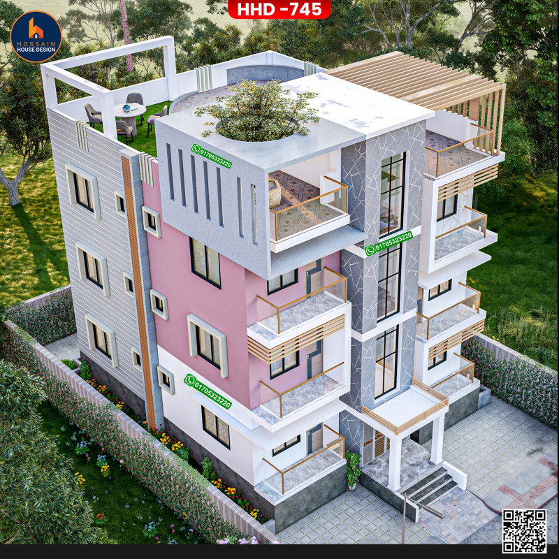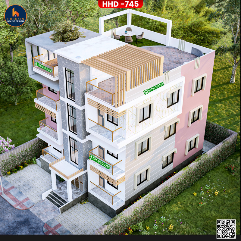 HHD 745 – 3 Storied House Design in Maheshpur, Jhenaidah is a smartly planned multi-level RCC residential home designed for both family living and rental use in Bangladesh. Its Reinforced Concrete Construction ensures structural safety, durability, and low maintenance.